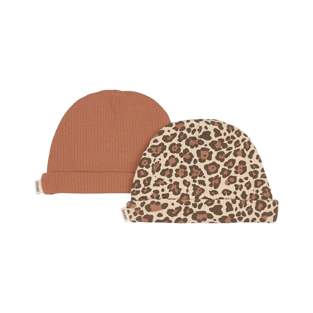 Keep little ears warm in style. Brown, beige Detroit GOTS beanies by Kuling. The hats have a ribbed design. They have a folded hem.