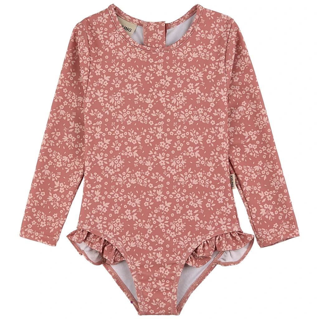 Time to go for a swim. Pink Antibes swimsuit by Kuling. The swimsuit has a quick-drying, stretchy material.