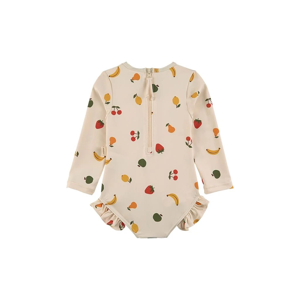 Go for a swim style and comfort. Cream Antibes swimsuit by Kuling. The swimsuit has a quick-drying, stretchy material.