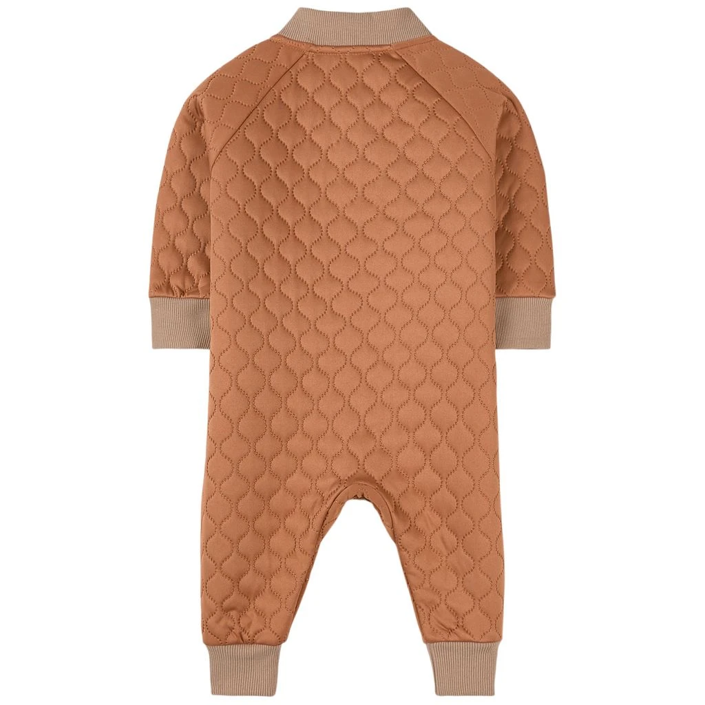 Busan coveralls by Kuling. The coveralls have a quilted design. They have a zip closure at the front, a split kangaroo pocket and ribbed cuffs.