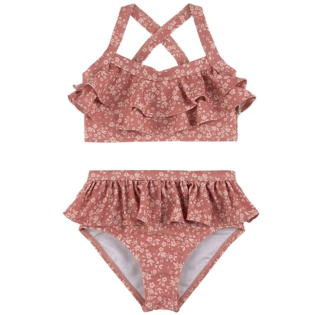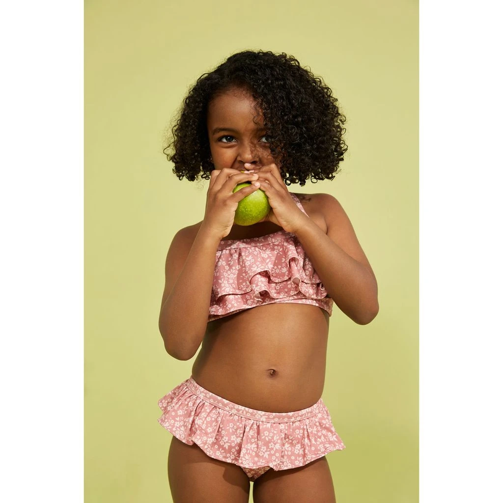 Time to go for a swim. Pink Cannes bikini by Kuling. The bikini has ruffles.