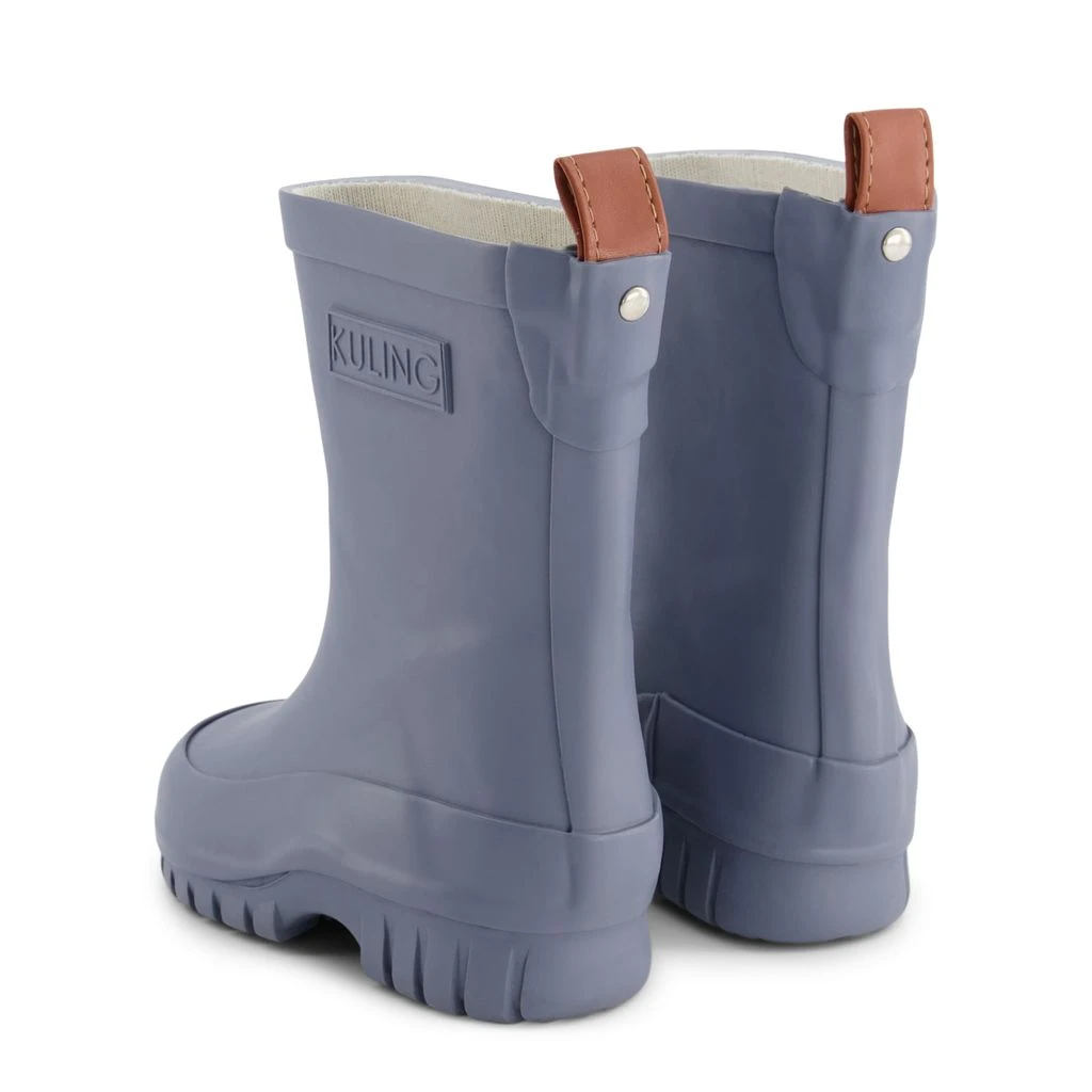 Time to jump through puddles. Blue Caracas rain boots by Kuling. The boots have a rubber upper. They have a bonded lining, welded seams, removable insoles, a sole with rough tread for a sure step and a pull tab at the back.