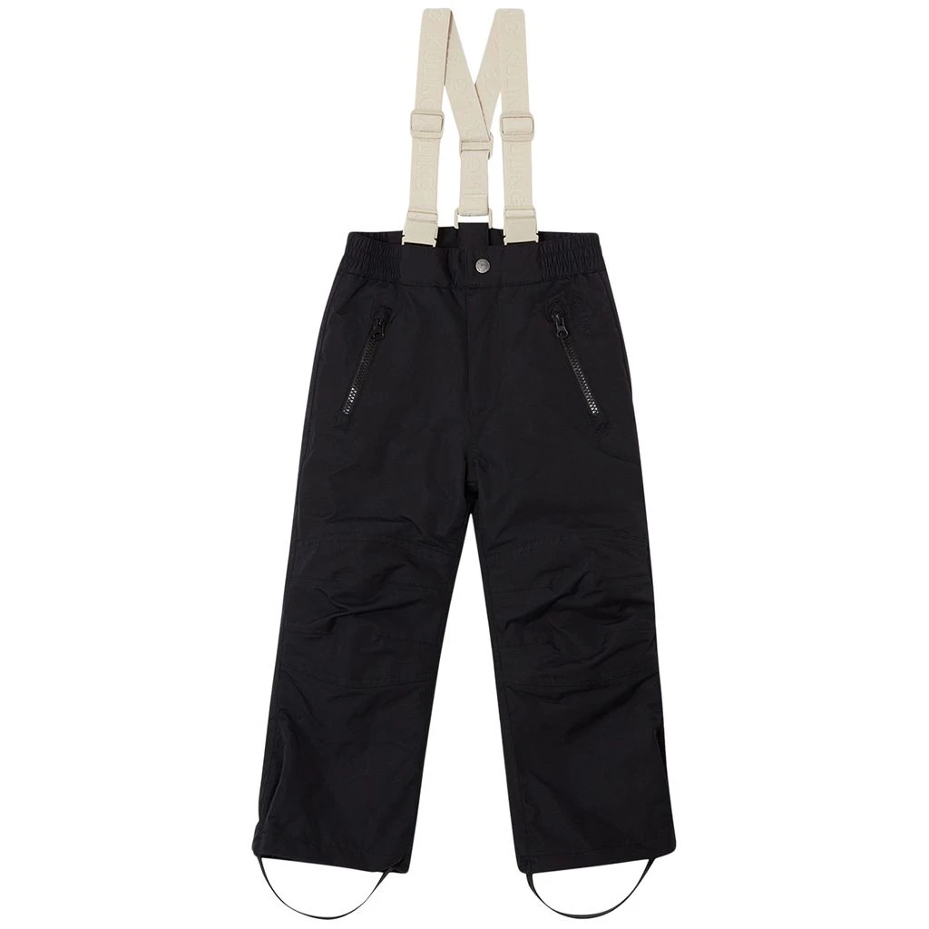 Perfect for the ski slopes. Black Cervinia ski trousers by Kuling. The trousers have taped seams. They have adjustable, detachable shoulder straps, an elasticated waist, a zip fly with snap button, two front pockets, articulated knees, snow gaiters at the leg ends, silicone foot loops and reflective details for visibility.