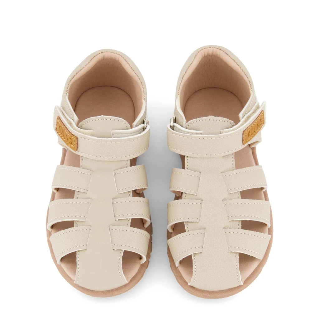 Perfect for those sunny days. Beige Dili sandals by Kuling. The sandals have a faux leather upper. They have a closed toe, a velcro closure for easy on and off, a cushioned insole and a non-slip sole.