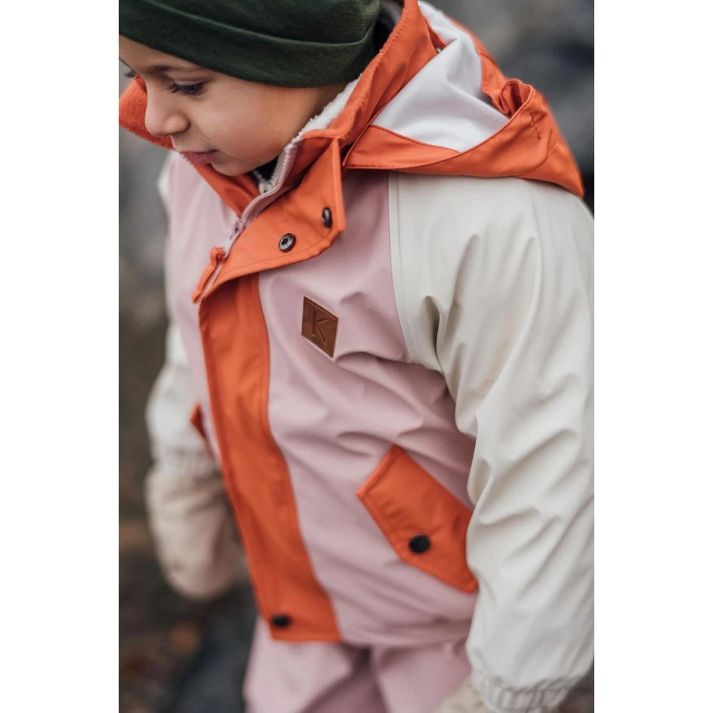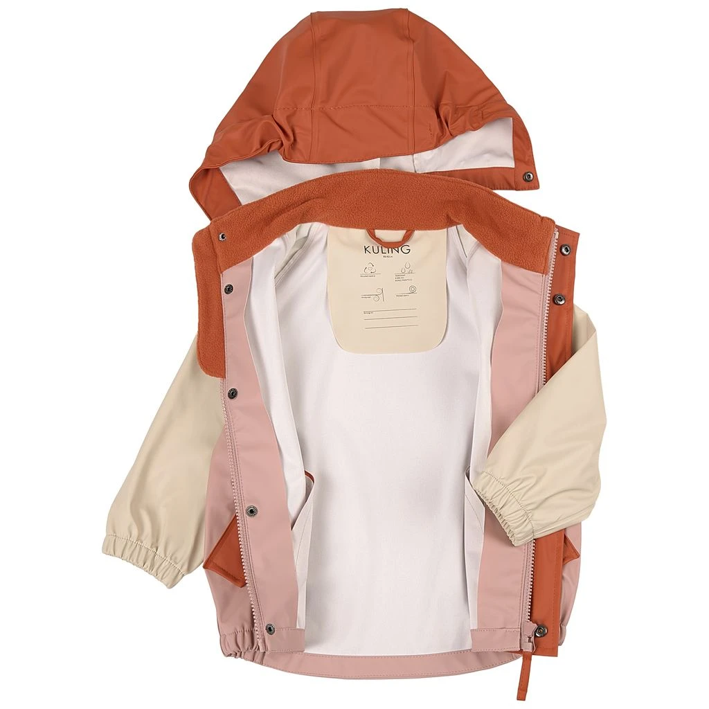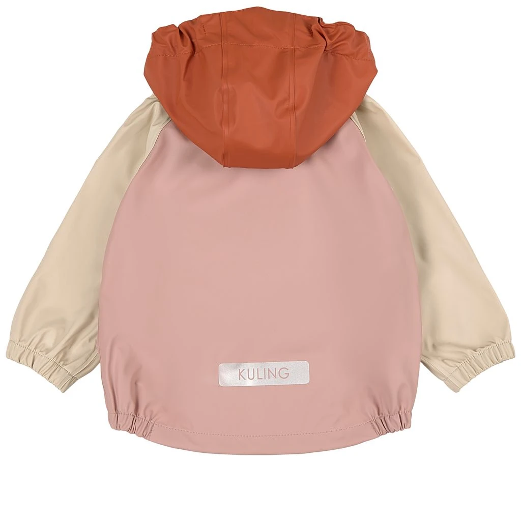 Rainy days won’t stand a chance. Pink Edinburgh raincoat by Kuling. The jacket has welded seams. It has a detachable hood, a zip closure at the front, two front pockets and reflective details for visibility.