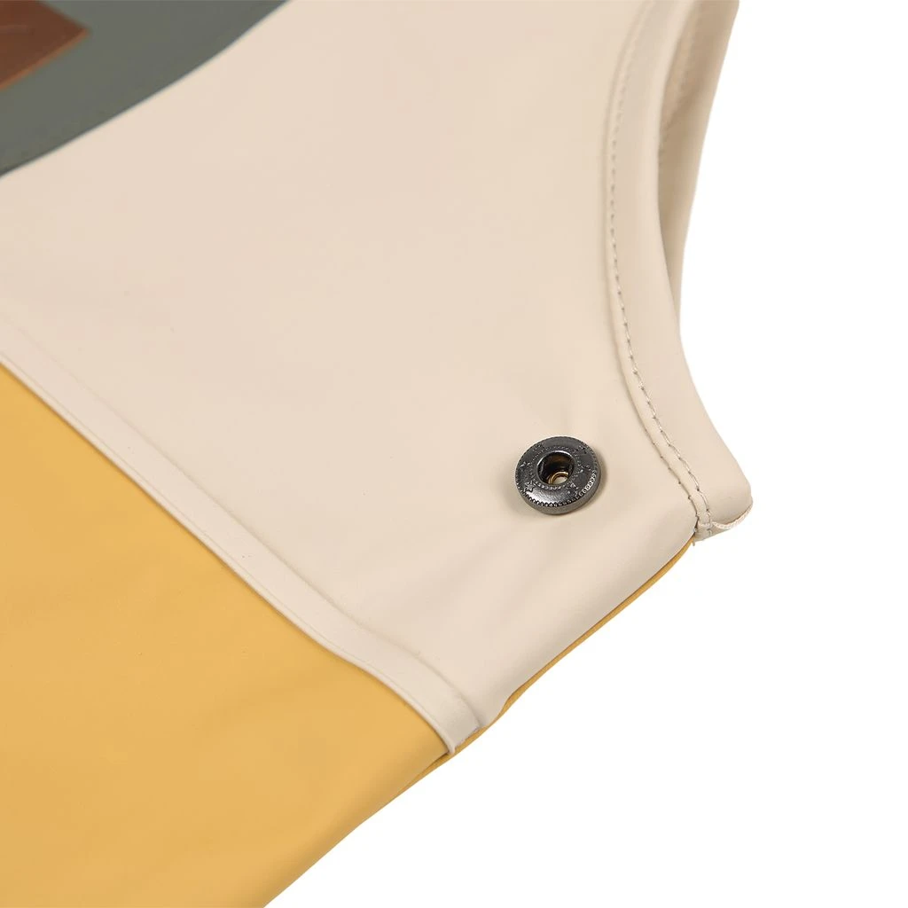 Rainy days won’t stand a chance. Yellow Edinburgh rain trousers by Kuling. The trousers have welded seams. They have elasticated, adjustable shoulder straps, one front pocket, elasticated cuffs, adjustable silicone foot loops and reflective details for visibility.