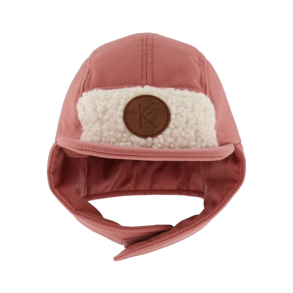 Keep little heads warm. Pink Edmonton shell cap by Kuling. The shell cap has light padding. It has a flat bill, ear flaps with velcro closure at the chin and a teddy fleece at the front.