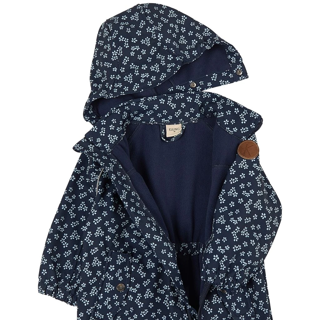 Get ready for play filled days. Blue Gothenburg softshell coverall by Kuling. The softshell coverall has taped seams. It has a soft fleece lining, a detachable hood, a zip closure at the front, two front pockets, elasticated cuffs, adjustable, detachable foot loops and reflective details for visibility.