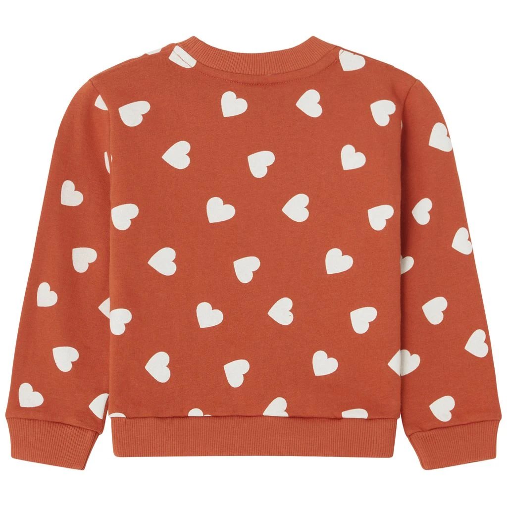 An on-trend and comfortable sweatshirt for everyday life. Orange GOTS Heraklion sweatshirt by Kuling. The sweatshirt has an all-over print with hearts. It has a regular fit and ribbed cuffs.