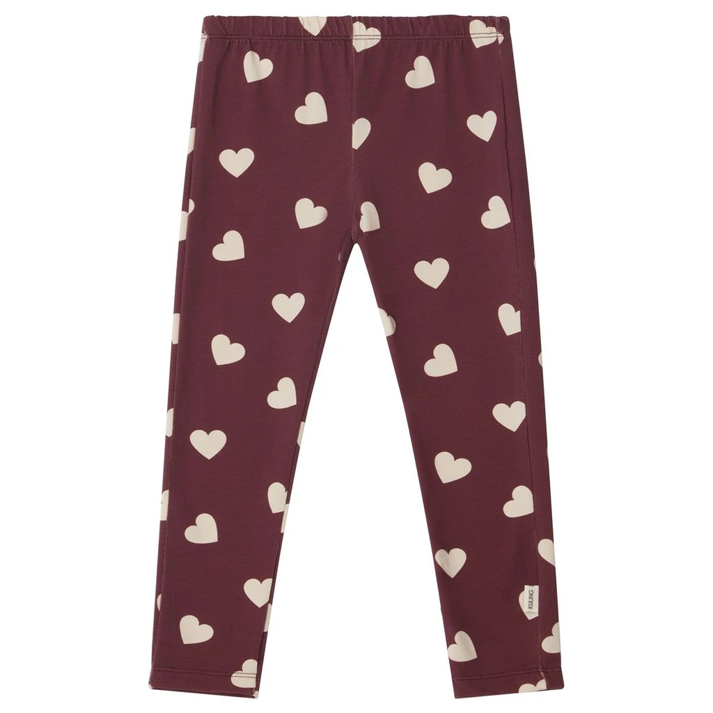 Be eco-friendly and feel amazing in these leggings. Red GOTS Serrai leggings by Kuling. The leggings have an all-over print with hearts. They have an elasticated waist.