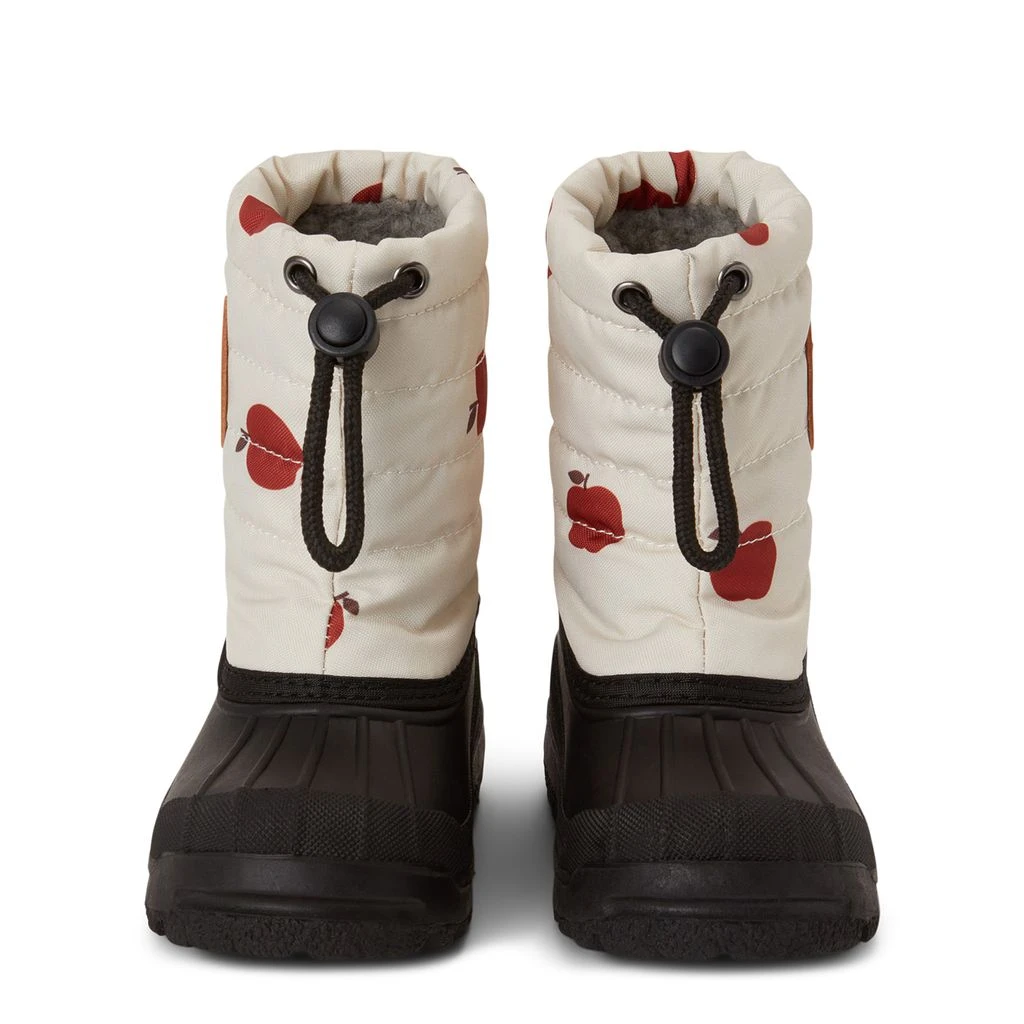 Keep little feet warm. White Isaberg winter boots by Kuling. The winter boots have an insulated shaft for warmth. They have a cosy pile lining, an adjustable cinch cord at the top, a reflective detail for visibility and soles with rough tread for a sure step.