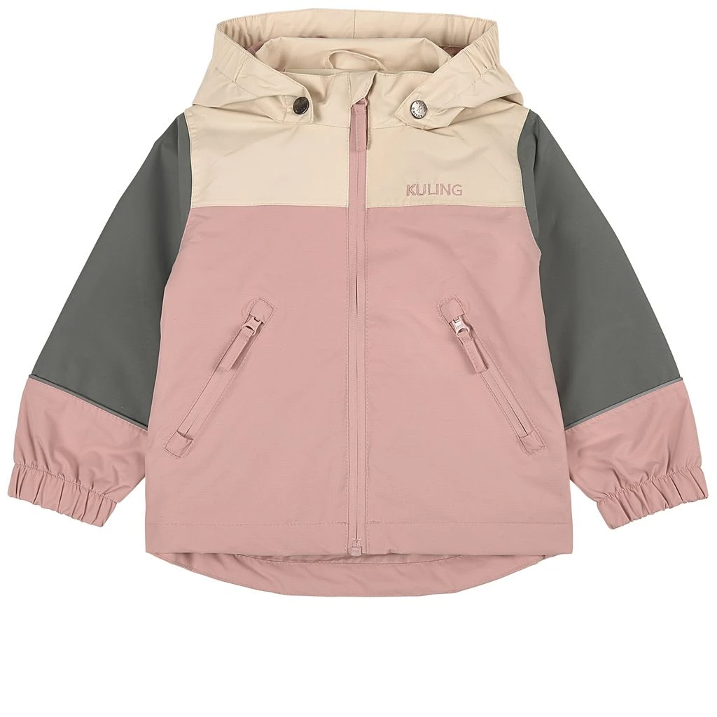 Pink Lillehammer jacket by Kuling. The jacket has taped seams. It has a detachable hood, a zip closure at the front and two front pockets.