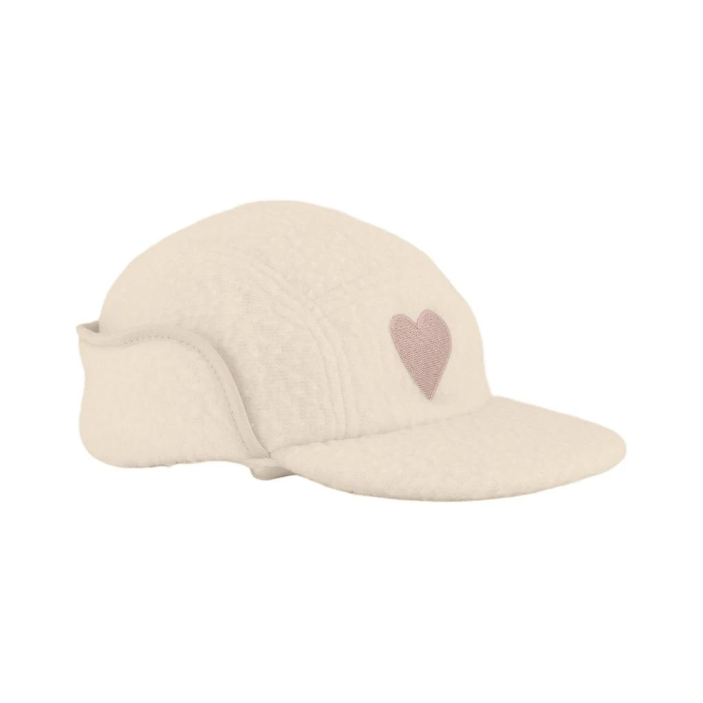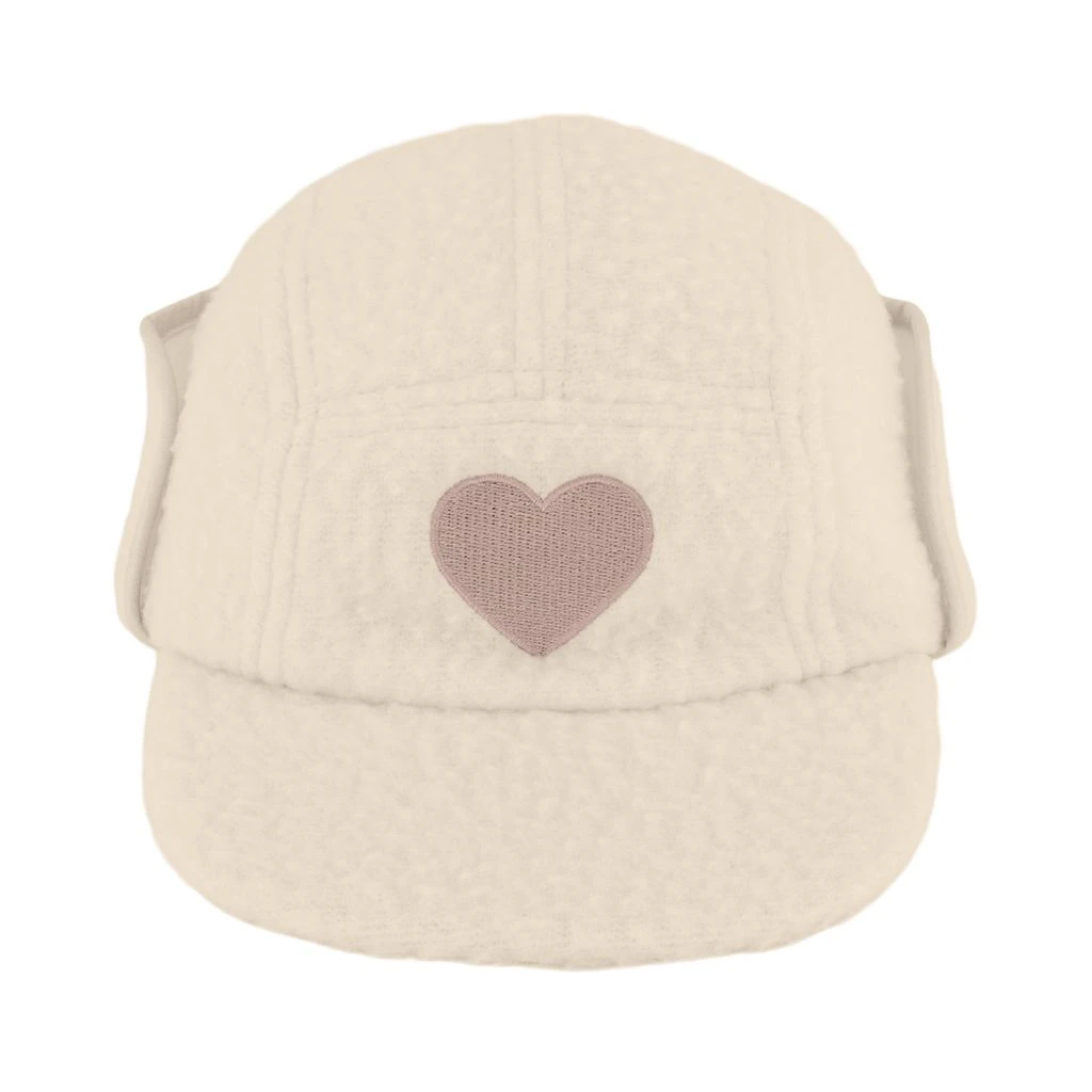 Sand Limited Edition Heart Pile Fleece cap by Kuling. The cap has a soft fleece material. It has a flat bill, a longer material at the back and an embroidered heart at the front.