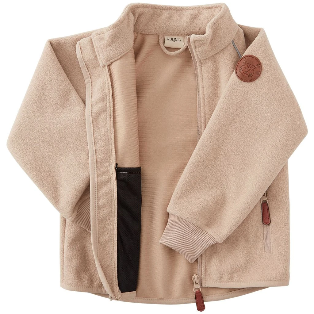 Get ready for outdoor adventures. Beige Livigno fleece jacket by Kuling. The jacket has a detachable hood. It has a zip closure at the front, two front pockets, ribbed cuffs with thumbholes and reflective details for visibility.