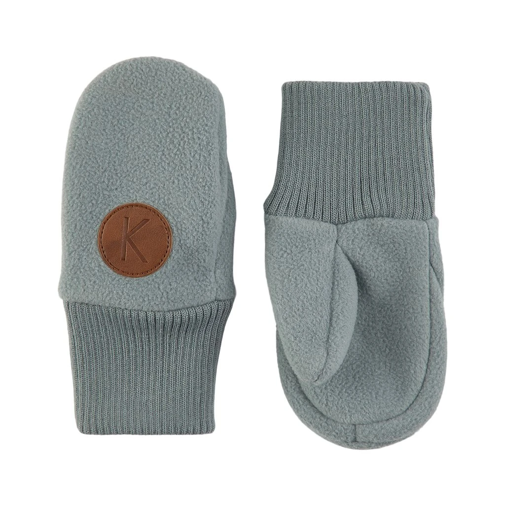 Keep little hands warm. Light green Livigno mittens by Kuling. The mittens have ribbed cuffs.