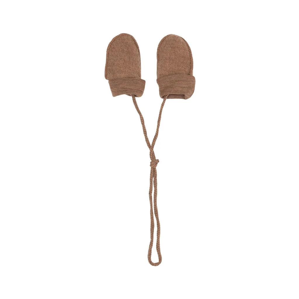 Keep little hands warm. Merino mittens by Kuling. The mittens have a soft fleece material. They have ribbed cuffs and an attached string to prevent the mittens getting lost.