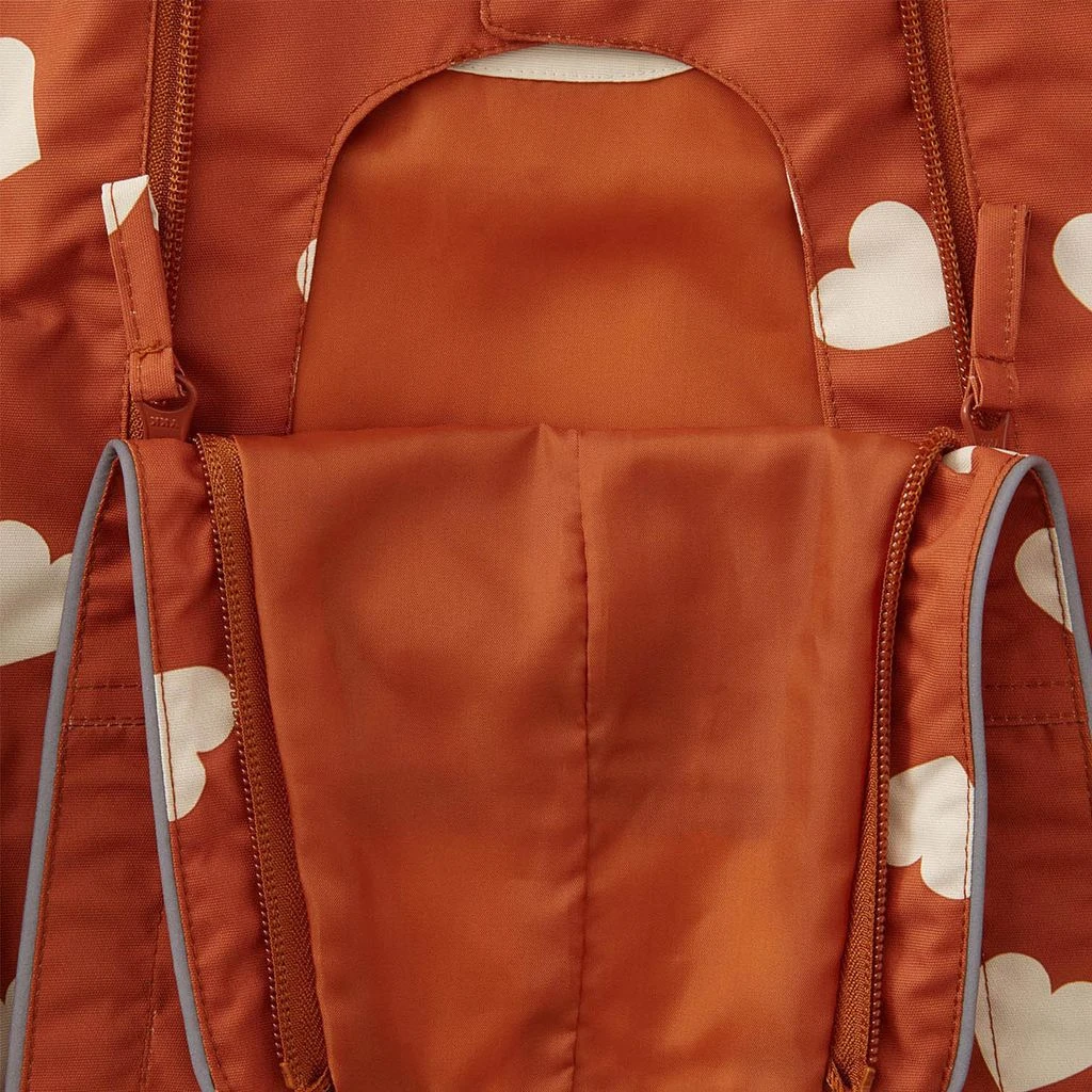 Get ready for outdoor adventures. Orange Milano shell coverall by Kuling. The shell coverall has taped seams. It has YKK® zippers at the front, a detachable hood, a chest pocket, elasticated cuffs, adjustable, detachable silicone foot loops and reflective details for visibility.