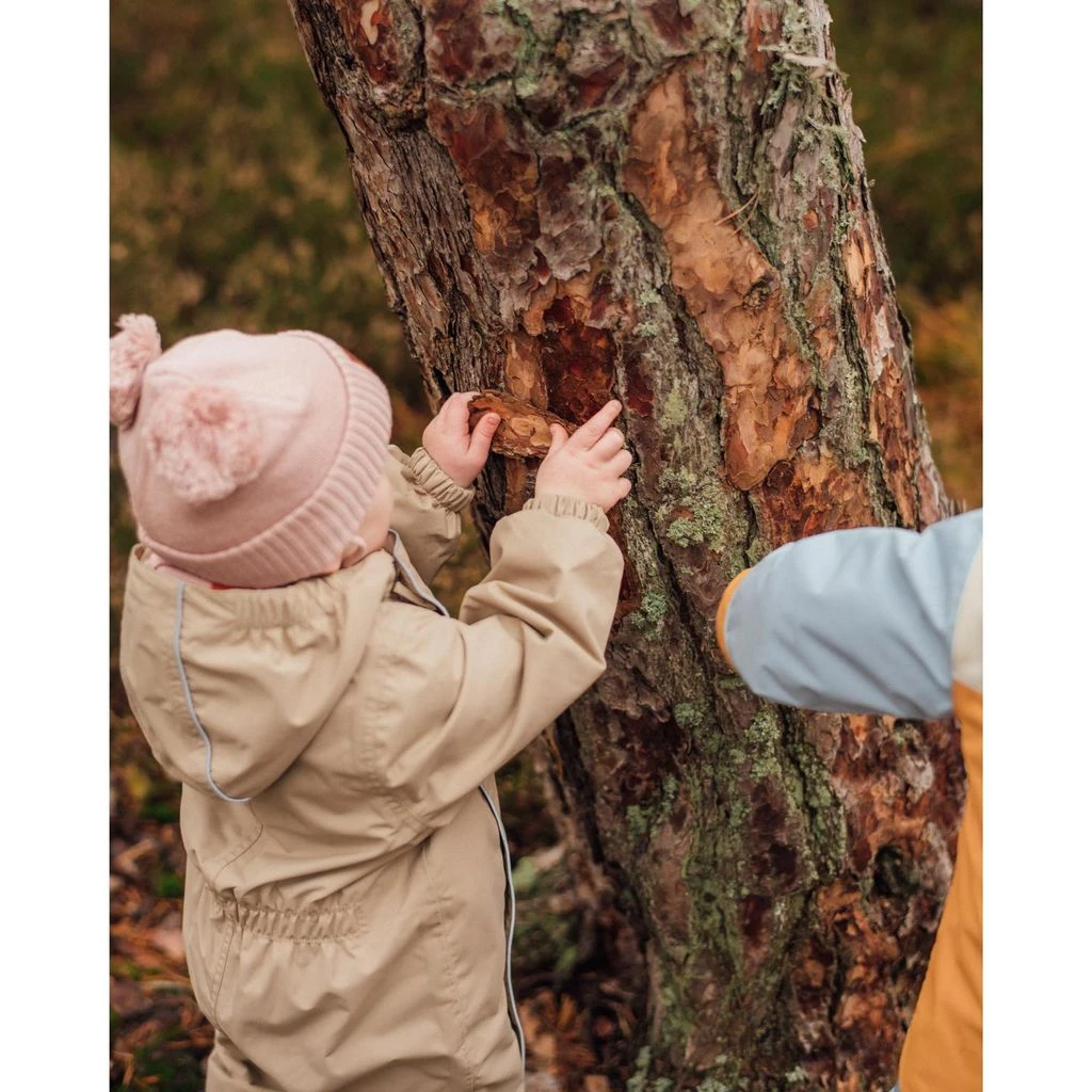 Get ready for outdoor adventures. Beige Milano shell coverall by Kuling. The shell coverall has taped seams. It has YKK® zippers at the front, a detachable hood, a chest pocket, elasticated cuffs, adjustable, detachable silicone foot loops and reflective details for visibility.