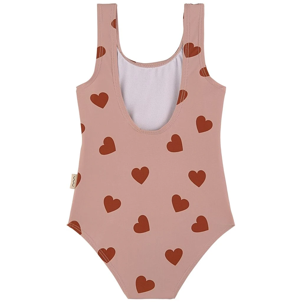 Time to go for a swim. Pink Milos swimsuit by Kuling. The swimsuit has a quick-drying, stretchy material.
