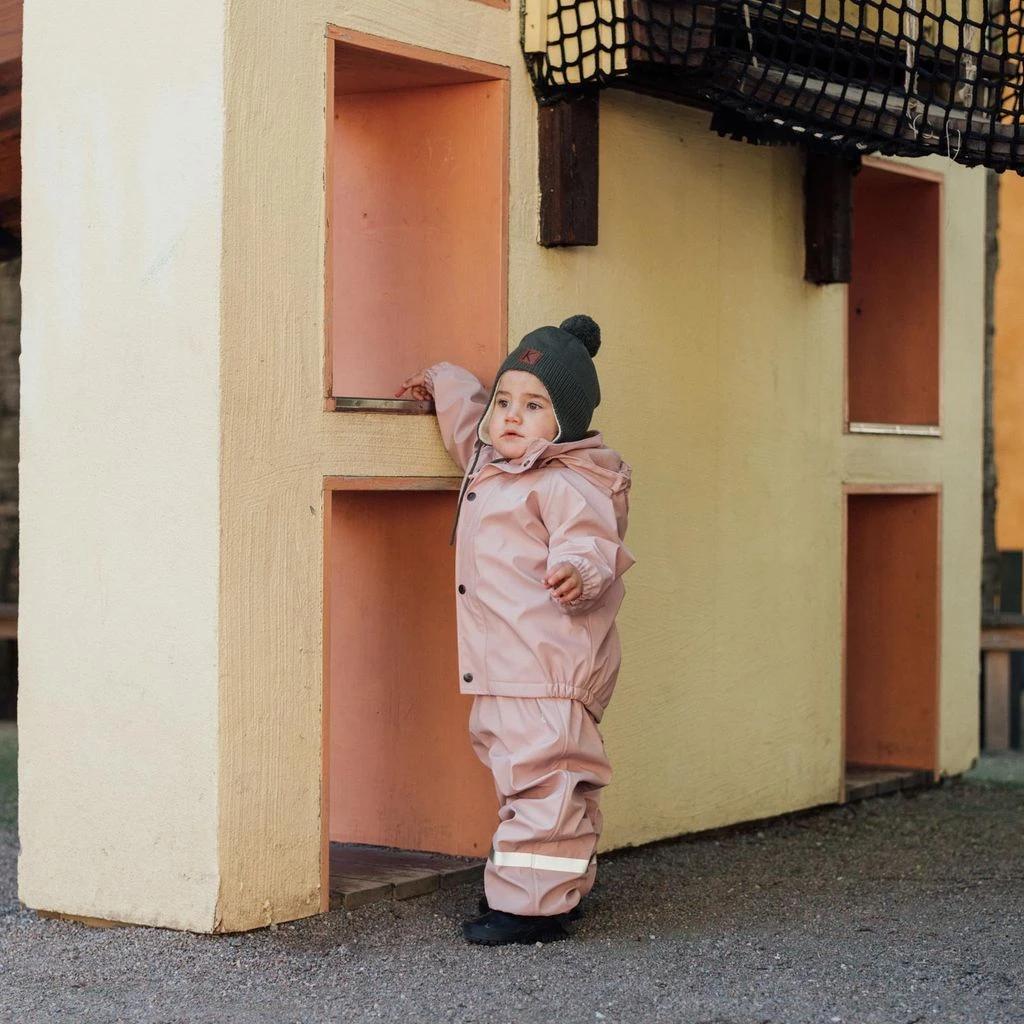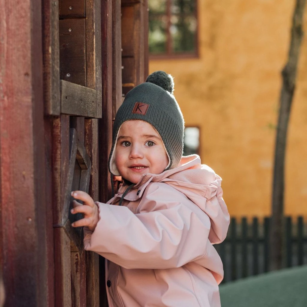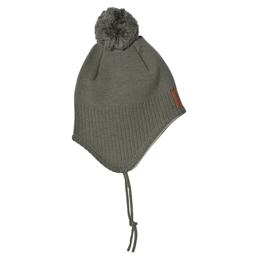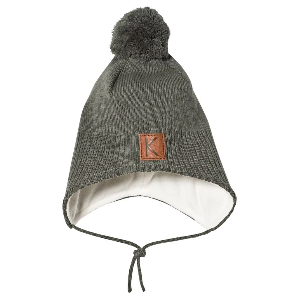 Light green Narvik beanie by Kuling. The hat has a warm fleece lining. It has tie strings at the chin.
