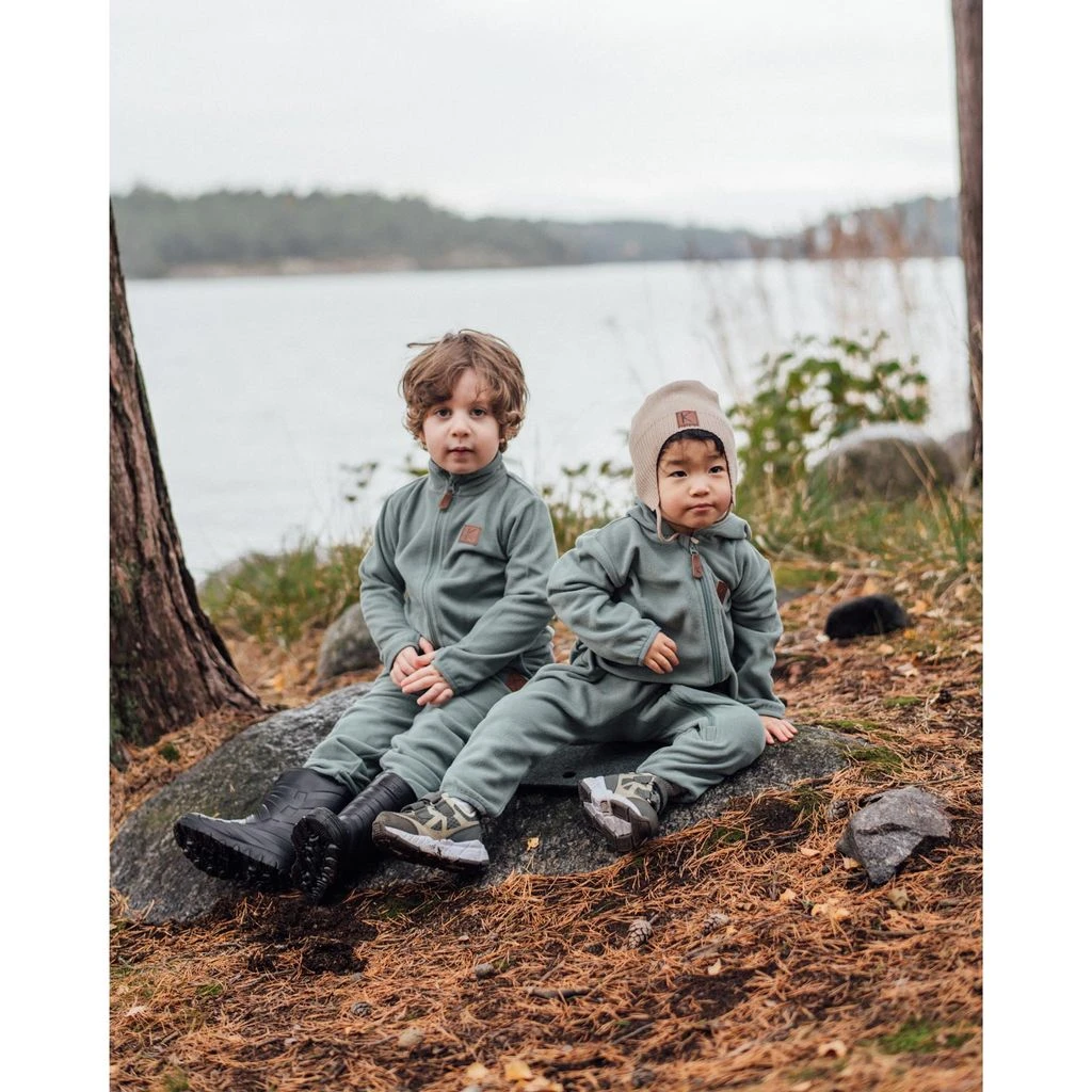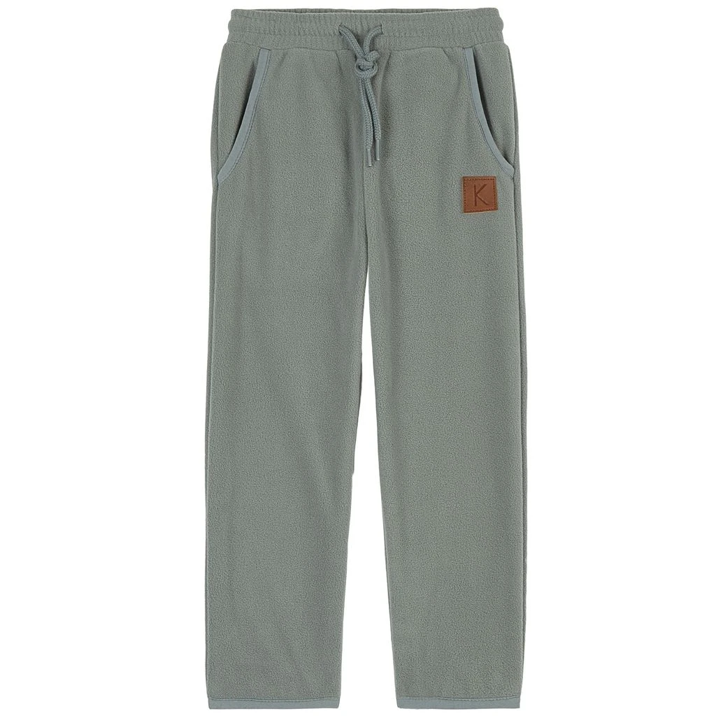 Keep warm with comfy fleece. Green Northpole fleece pant by Kuling. The fleece pant has an elasticated drawstring waist. It has two front pockets.