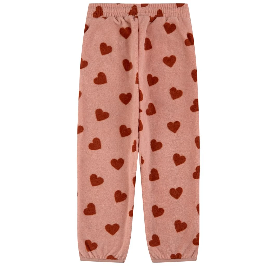 Keep warm with comfy fleece. Pink Northpole fleece pant by Kuling. The fleece pant has an elasticated drawstring waist. It has two front pockets.