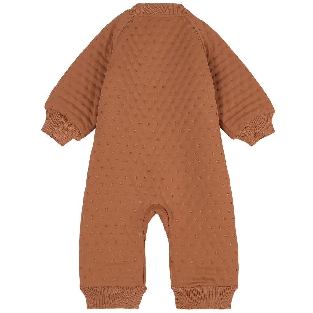 Get ready for outdoor adventures. Brown Odense coverall by Kuling. The coverall has a zip closure at the front. It has ribbed cuffs.