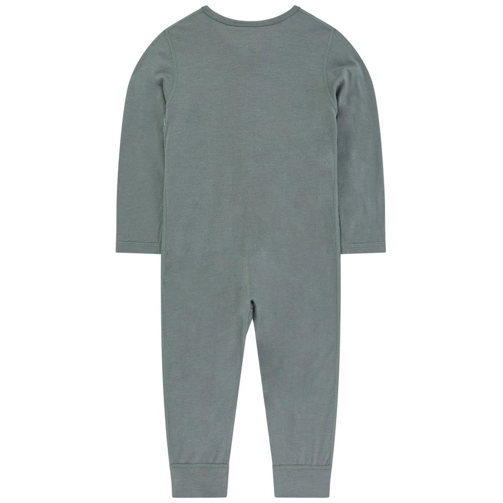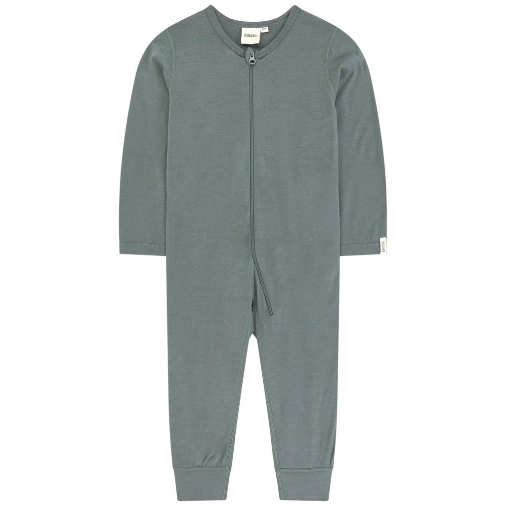 Green one-piece by Kuling. The one-piece has a zip closure at the front with a chin guard.
