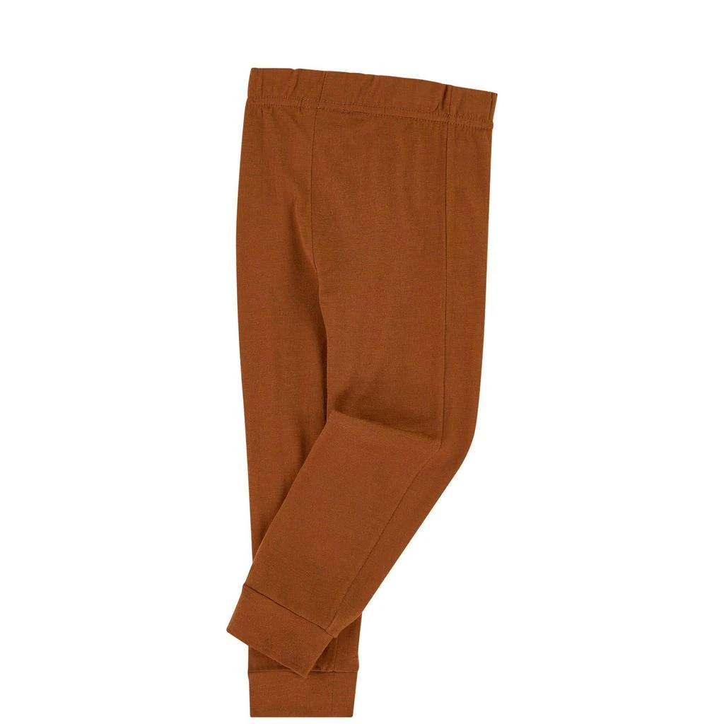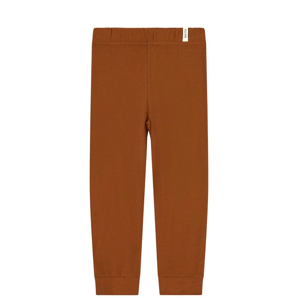 Brown trousers by Kuling. The trousers have an elasticated waist. They have ribbed cuffs.