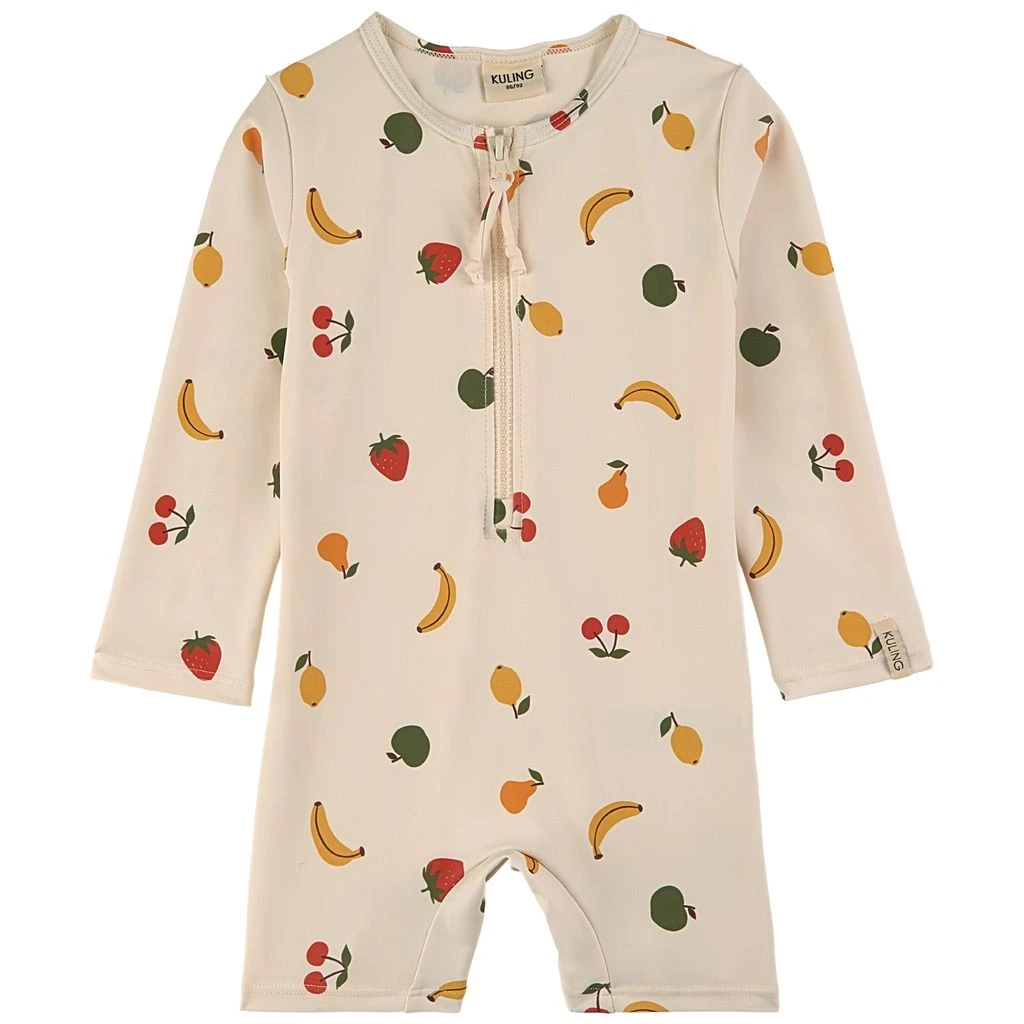 Perfect for some fun on the beach. Cream Paros one-piece rashguard swimsuit by Kuling. The one-piece rashguard swimsuit has a stretchy, quick-drying material.