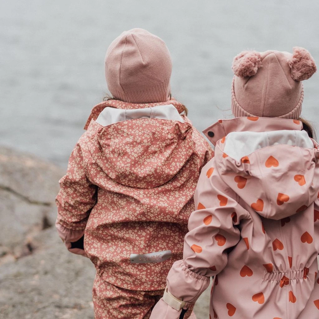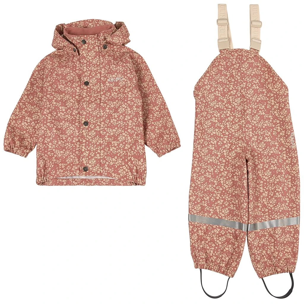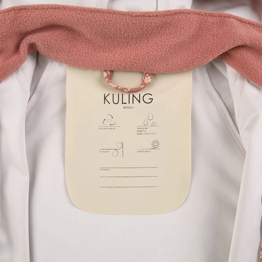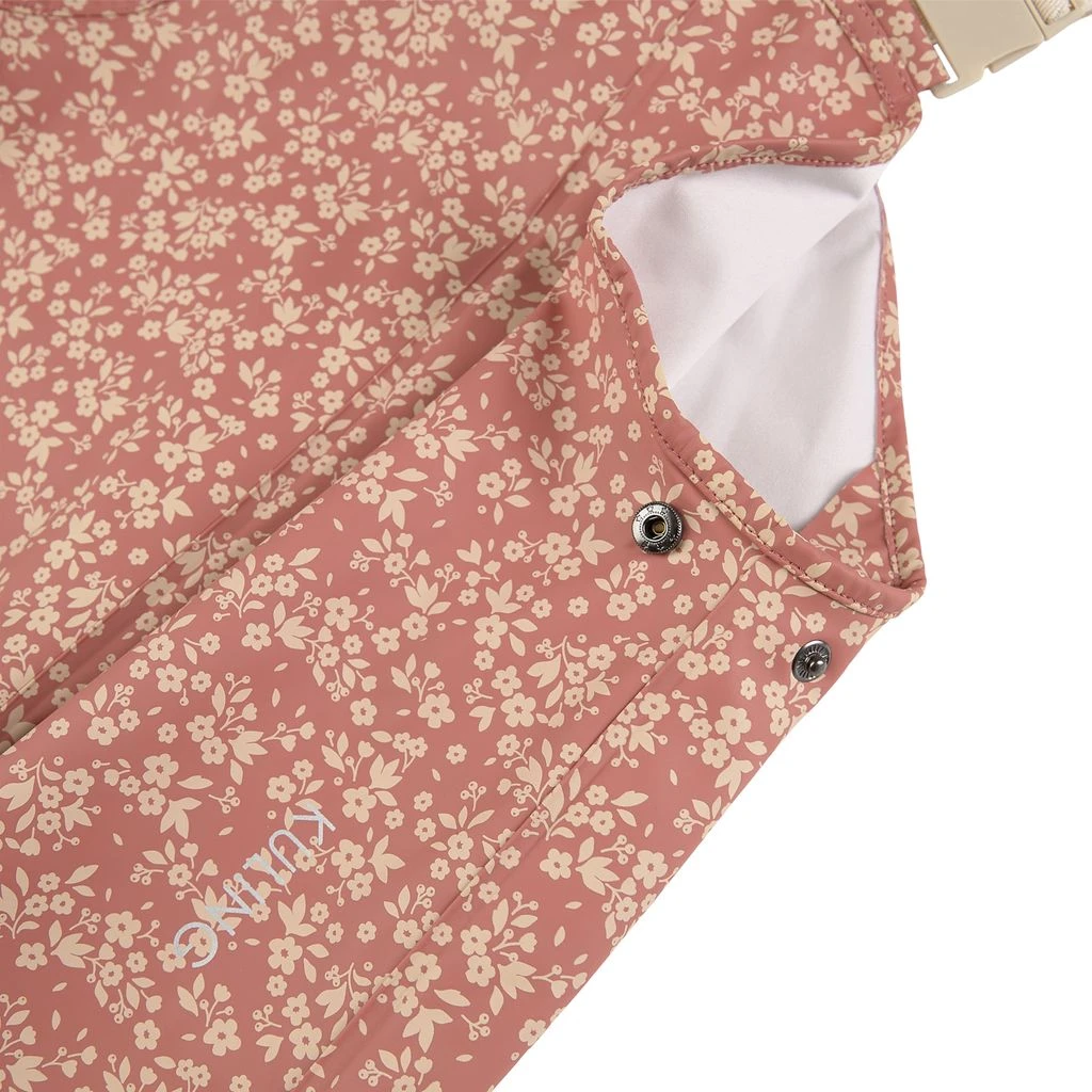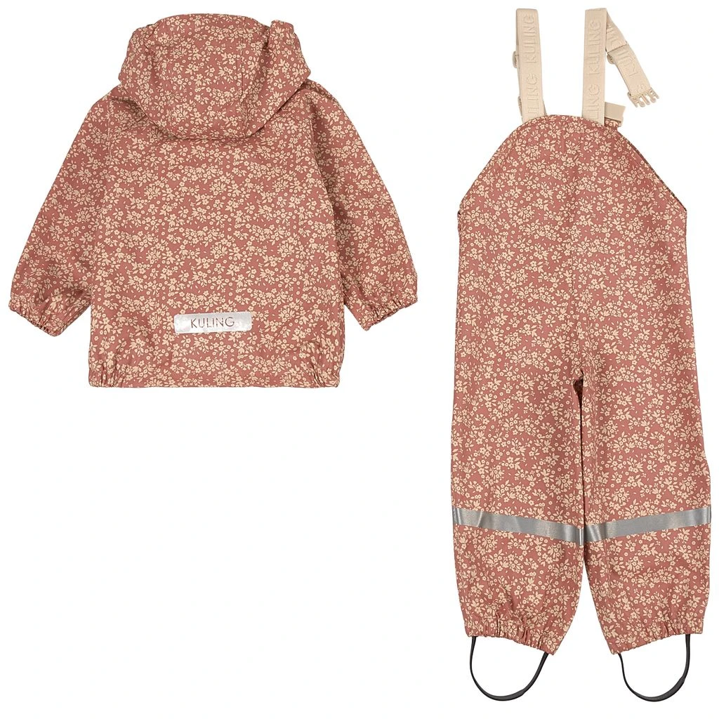 Time to jump through puddles. Pink San Marino rain set by Kuling. The set has welded seams. It has a jacket with a detachable hood, a zip closure at the front and elasticated cuffs, trousers with adjustable, elasticated shoulder straps, snap buttons at the sides, a front pocket, elasticated cuffs and adjustable, detachable foot loops and reflective details for visibility.