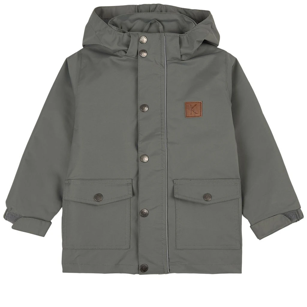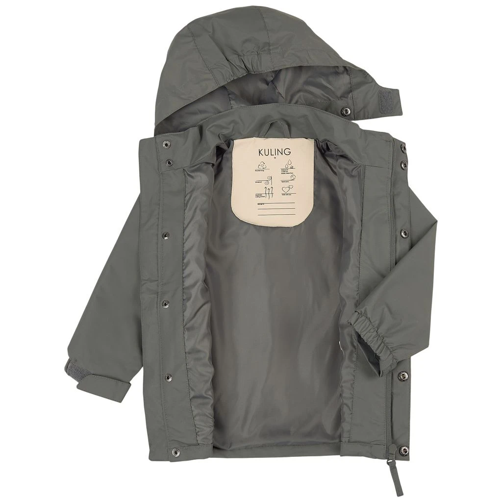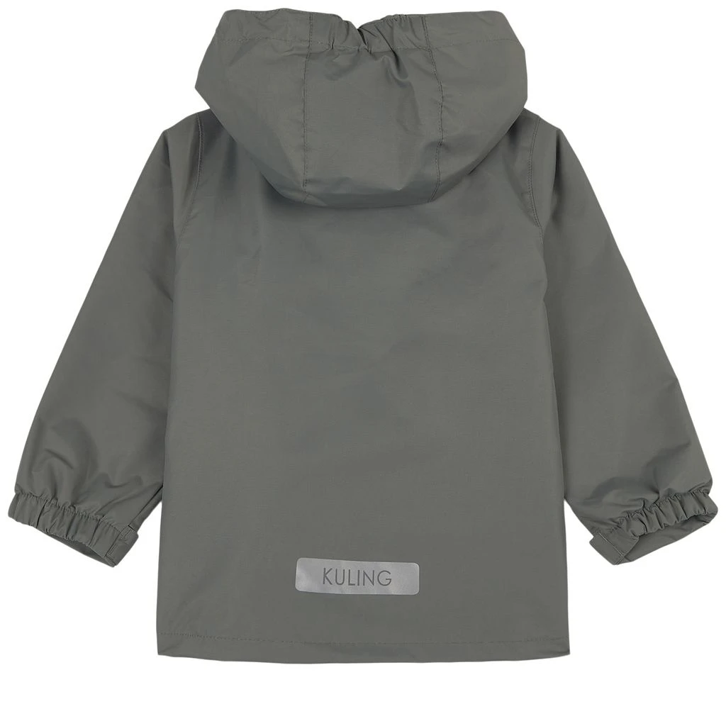 Get ready for outdoor adventures. Green Stockholm shell jacket by Kuling. The jacket has taped seams. It has a YKK® zipper at the front, a detachable hood, adjustable cuffs with a velcro closure, two front pockets and reflective details for visibility.
