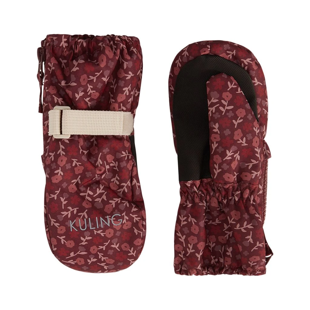 Keep little hands warm. Purple Tallinn mittens by Kuling. The mittens have taped seams. They have a fleece lining, an elasticated wrist with a velcro closure, a zip closure at the side and a reinforced palm.