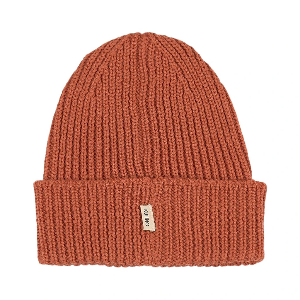 Keep little heads warm. Brown Umeå hat by Kuling. The hat has a rib-knit design. It has a folded hem.