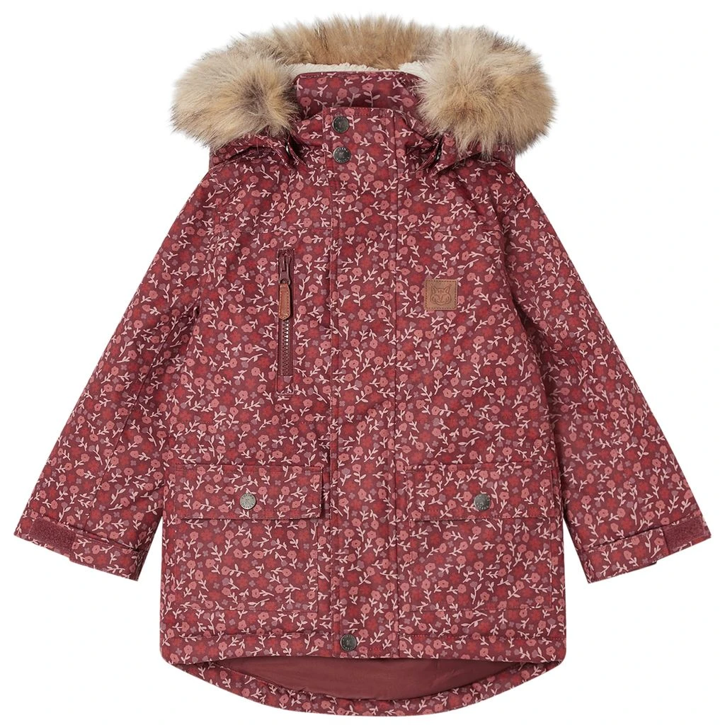 Be warm and comfy on winter adventures. Purple Val Thorens parka by Kuling. The jacket has taped seams. It has a detachable hood with faux fur trim, a zip closure at the front, an adjustable waist, two front pockets, a zip pocket at the chest and a reflective detail for visibility.