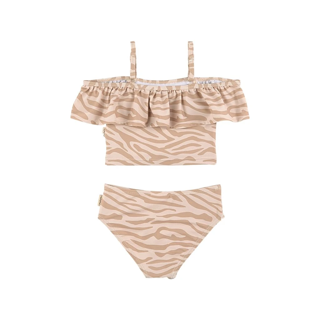 Time to go for a swim. Sand Valetta bikini by Kuling. The bikini has a quick-drying, stretchy material. It has a bikini top with a lined front, an off shoulder design and spaghetti straps and a bikini bottom with an elasticated waist and a gusset lining.