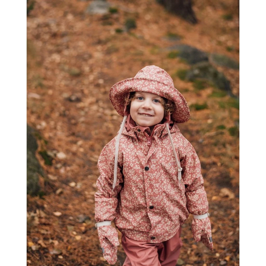 Rainy days won’t stand a chance. Pink Vasa rain hat by Kuling. The rain hat has welded seams. It has an asymmetrical brim, fleece lined ear flaps and tie straps at the chin.