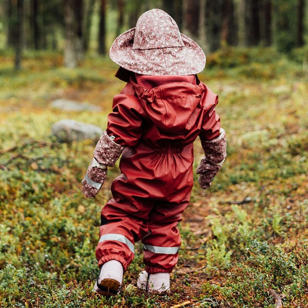 Purple Vasa rain hat by Kuling. The rain hat has welded seams. It has an asymmetrical brim, fleece lined ear flaps and tie straps at the chin.