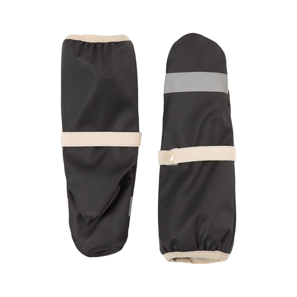 Rainy days won’t stand a chance. Black Vilnius rain mittens by Kuling. The rain mittens have welded seams. They have a soft fleece lining, an elasticated strap with snap button at the wrist, elasticated cuffs and reflective details for visibility.