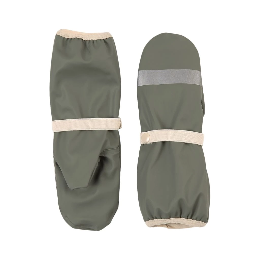 Light green Vilnius mittens by Kuling. The mittens have welded seams. They have a soft fleece lining, an elasticated strap with snap button at the wrist, elasticated cuffs and reflective details for visibility.