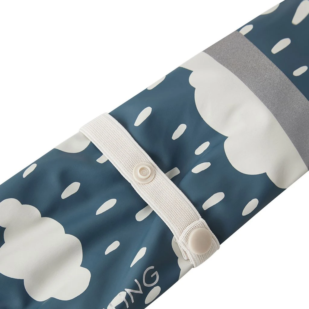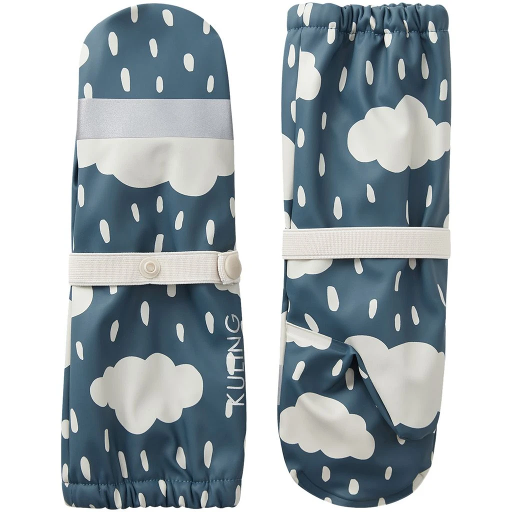 Rainy days will be so much fun. Blue Vilnius rain mittens by Kuling. The rain mittens have welded seams. They have a soft fleece lining, an elasticated strap with snap button at the wrist, elasticated cuffs and reflective details for visibility.