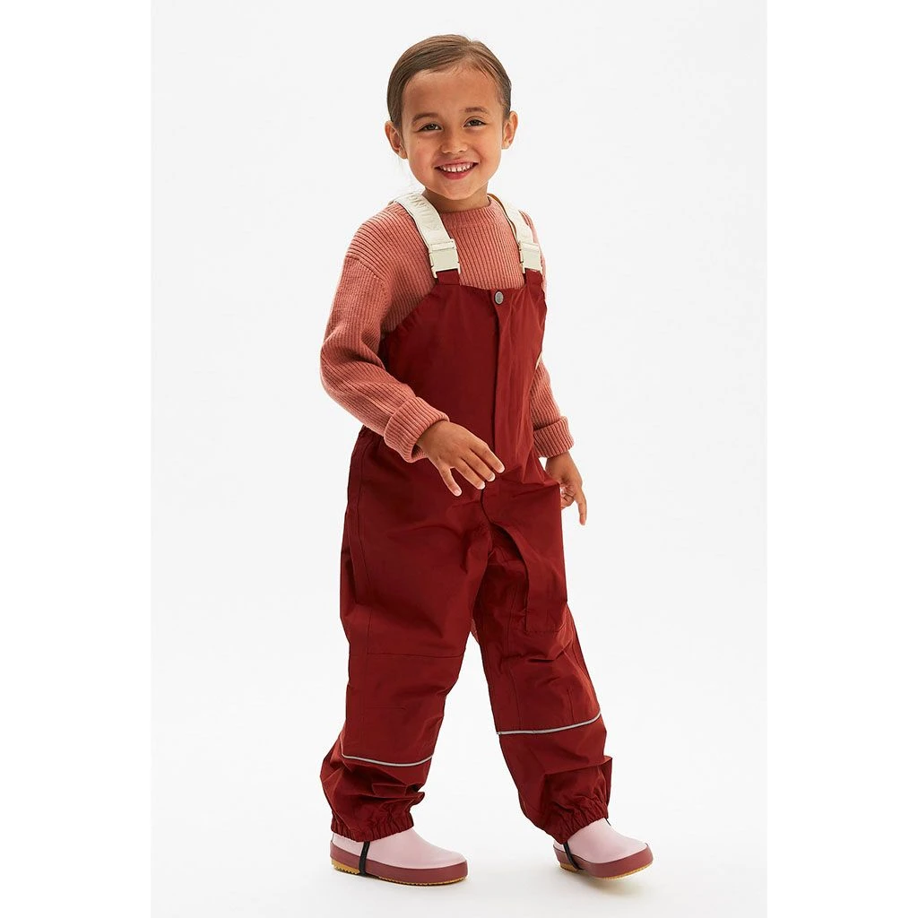 Get ready for outdoor adventures. Red Washington shell trousers by Kuling. The trousers have taped seams. They have adjustable shoulder straps, an elasticated waist, elasticated cuffs, adjustable, detachable silicone foot loops and reflective details for visibility.