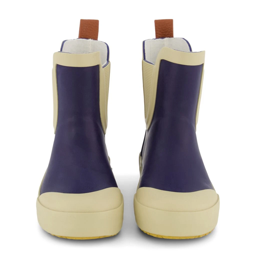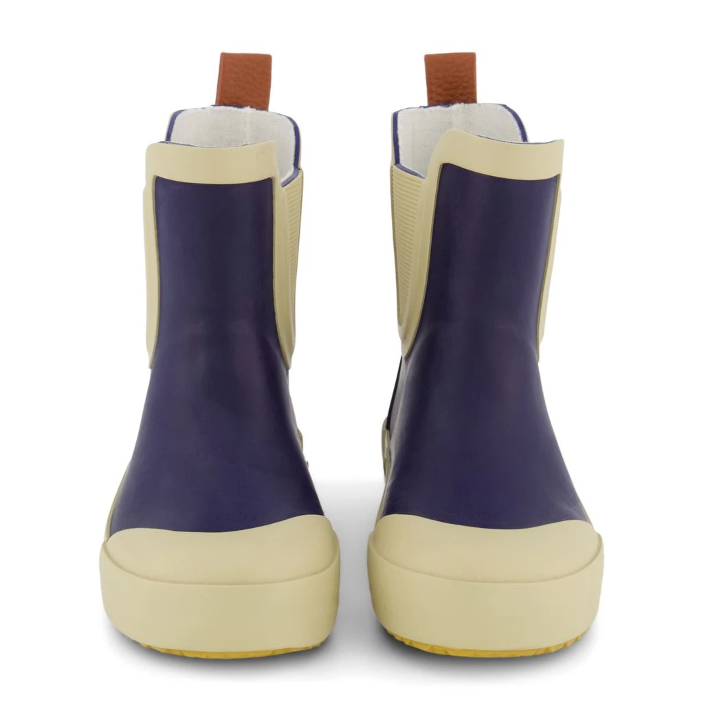 Time to jump through puddles. Navy Wells rain boots by Kuling. The boots have welded seams. They have a rubber upper, a bonded lining, a pull tab at the back, removable insoles and a non-slip sole.