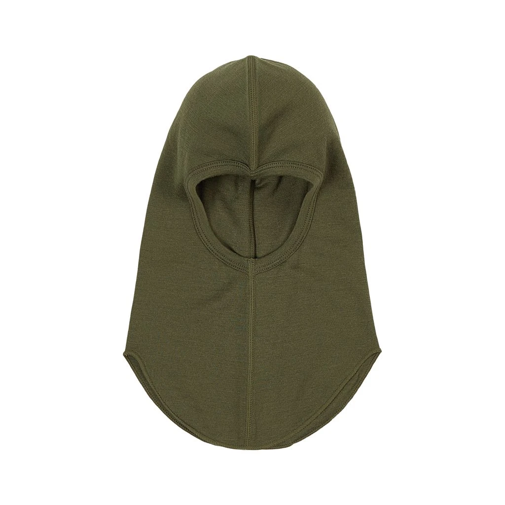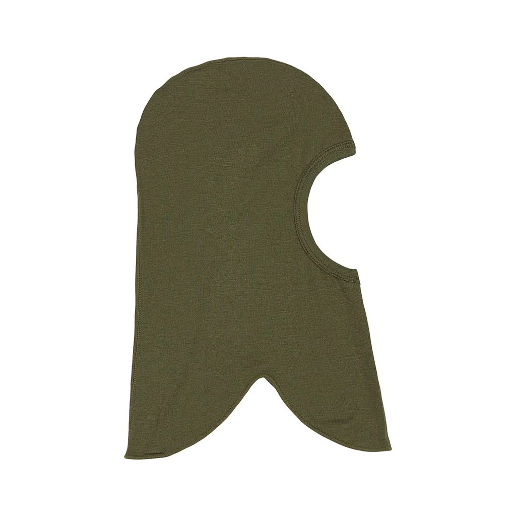 Keep little heads warm. Moss green wool balaclava by Kuling.