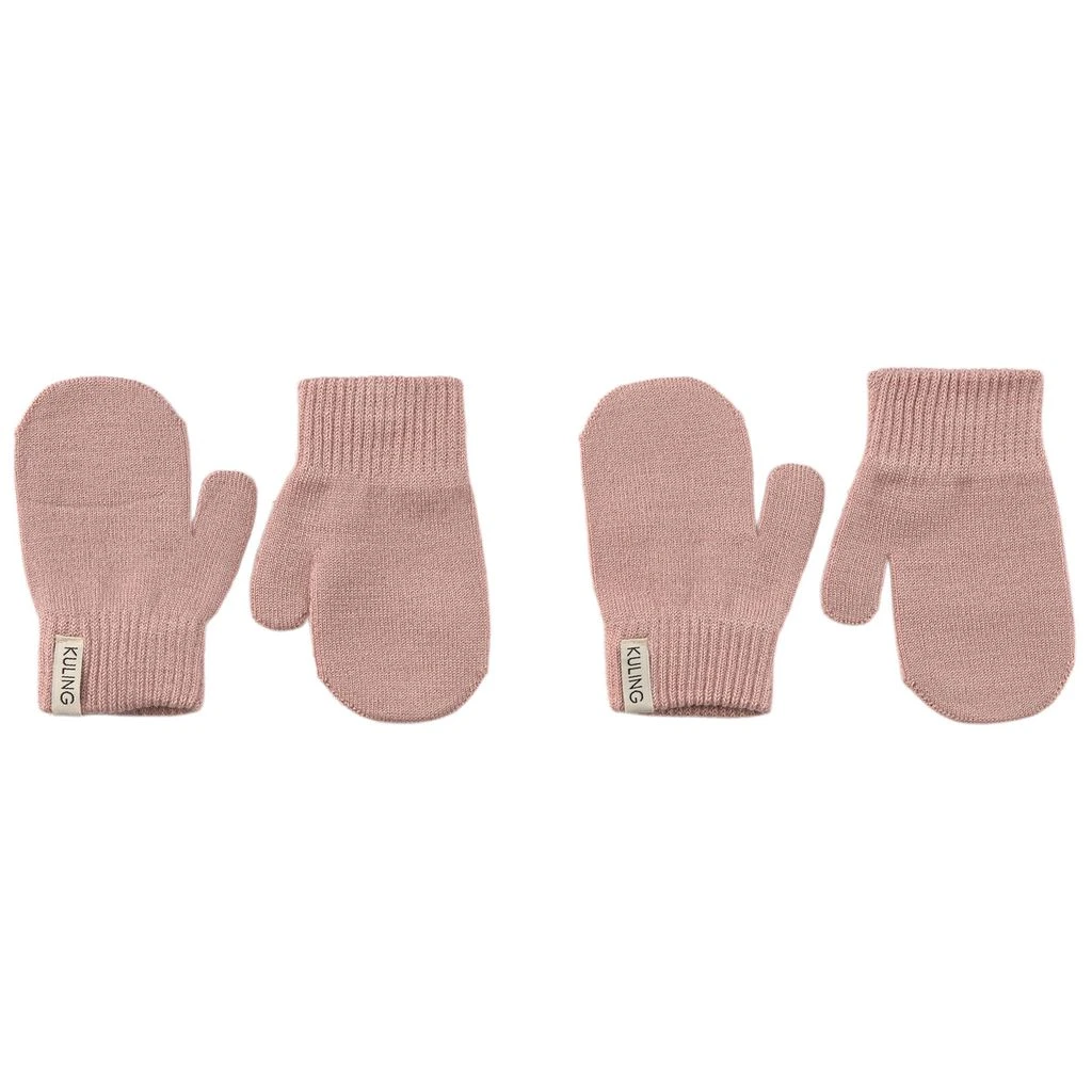 Pink Wool Magic mittens by Kuling. The mittens have a fine-knit design. They have ribbed cuffs.