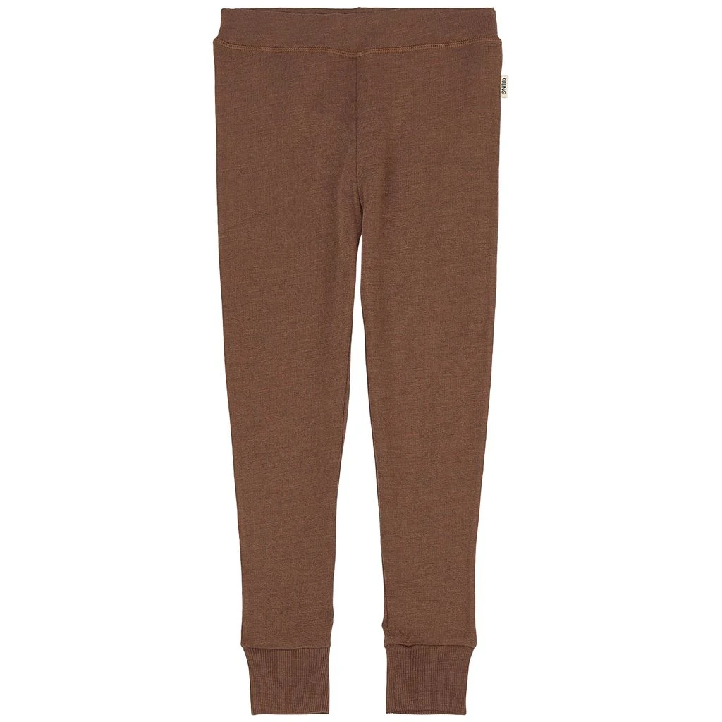 Keep little legs comfy. Brown wool pants by Kuling. The wool pants have an elasticated waist. They have ribbed cuffs.